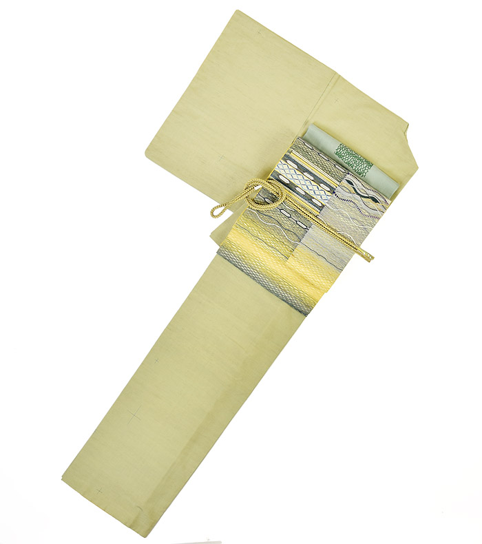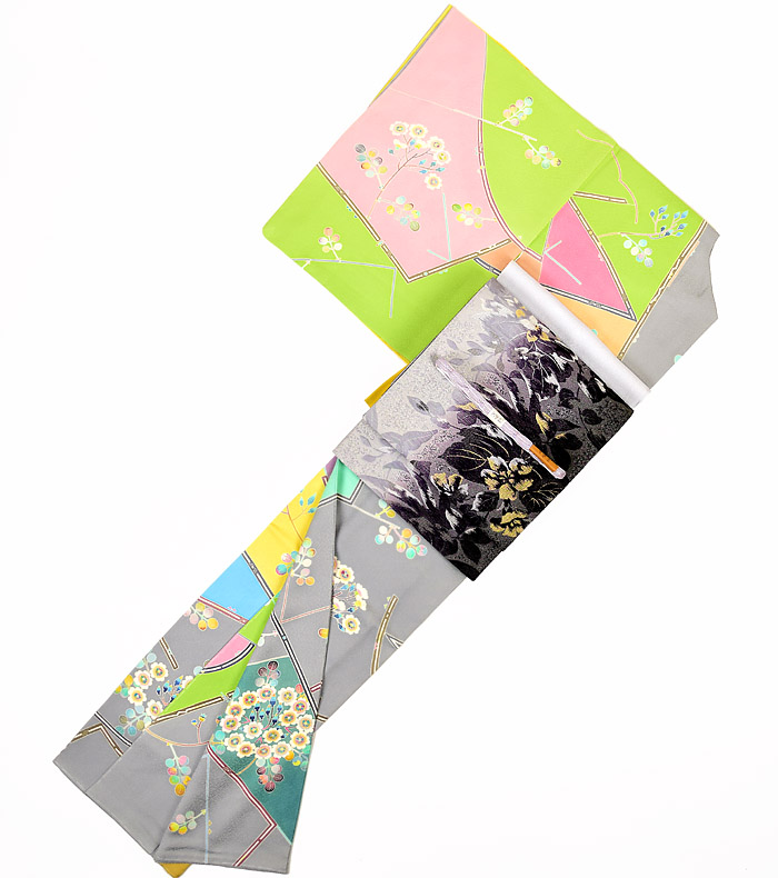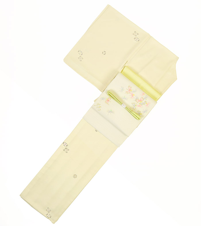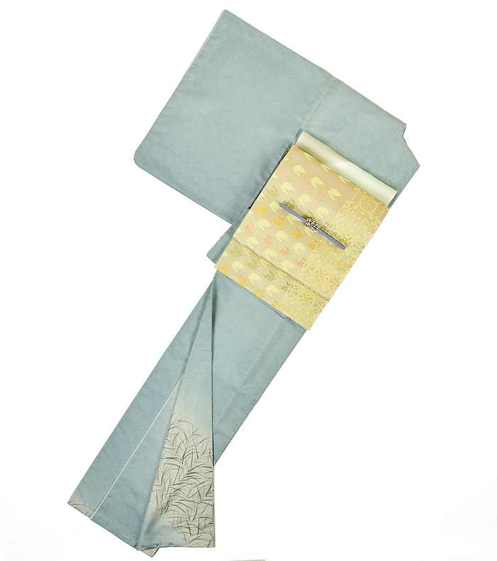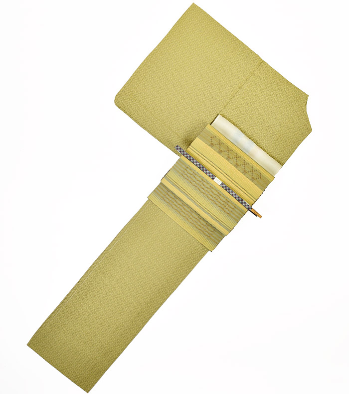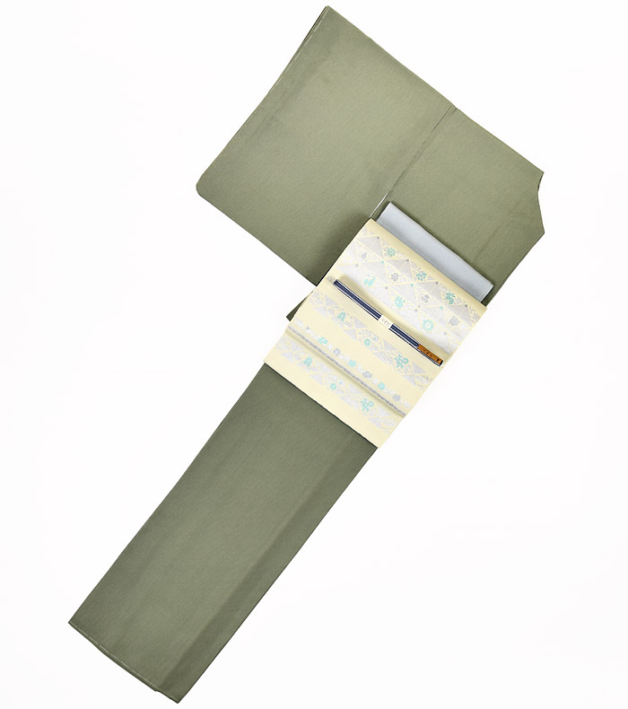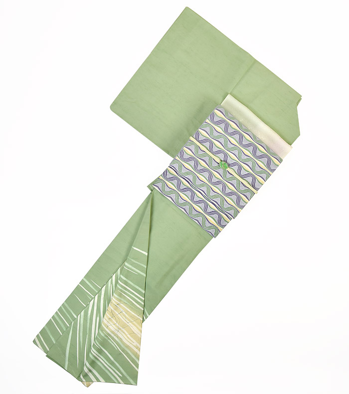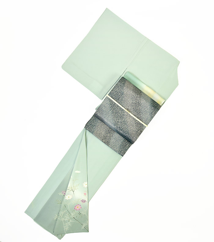 附下訪問着 ライトグリーングレー 紋意匠縮緬のコーディネイト
