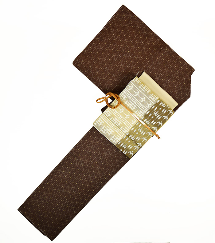 白根沢の米沢紬 茶 花織調のコーディネイト