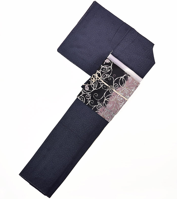 附下訪問着 紺地 華文 紋意匠縮緬のコーディネイト