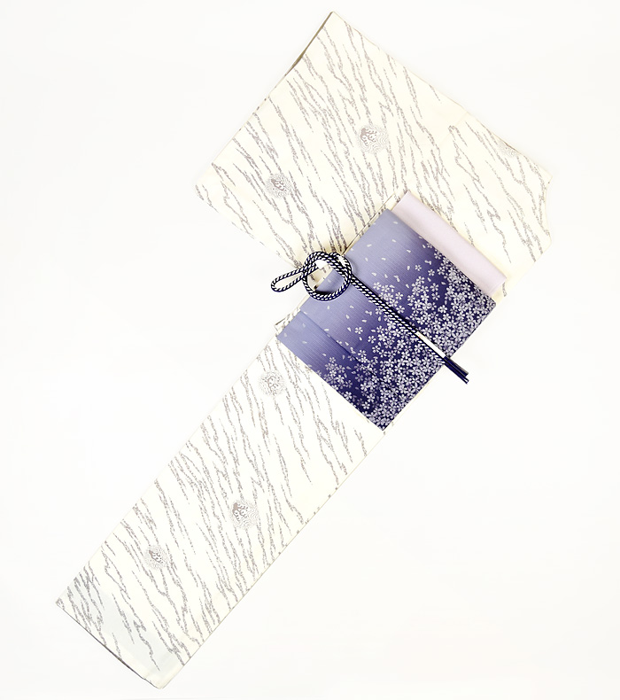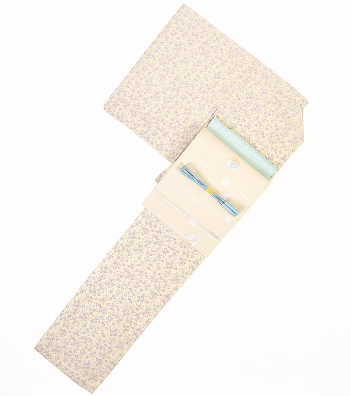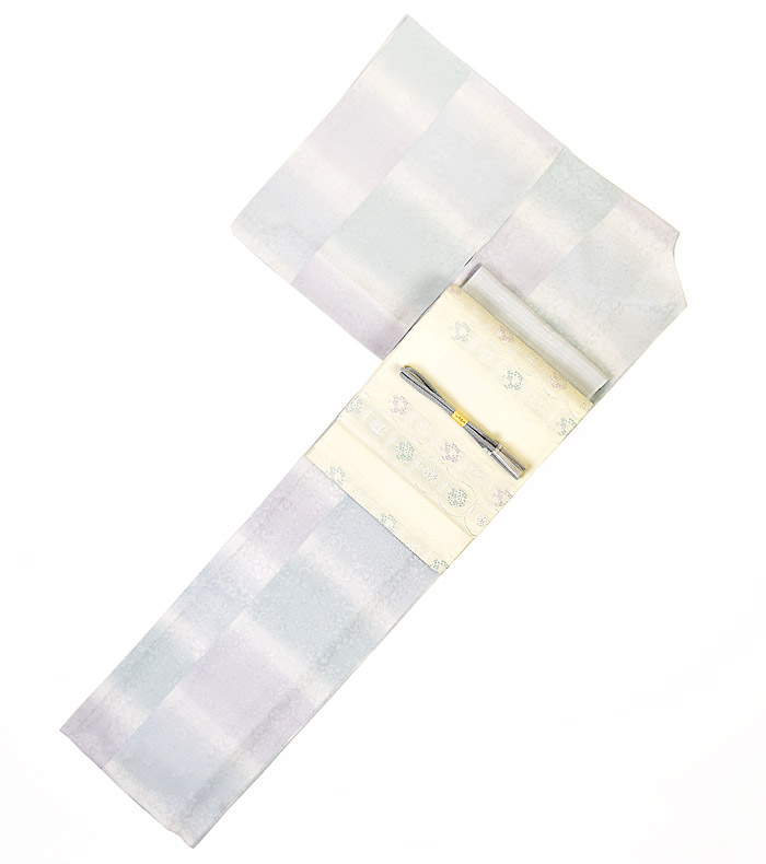 帯は生地が比較的薄めで配色も明るめの帯を選んで。また濃い色の帯を使う場合は、帯揚げや帯締めなどの小物を薄い色にして、バランスをとると良いでしょう。例えば名古屋帯で言うと、9寸名古屋帯よりも薄手の8寸名古屋帯が単衣帯の定番となります。