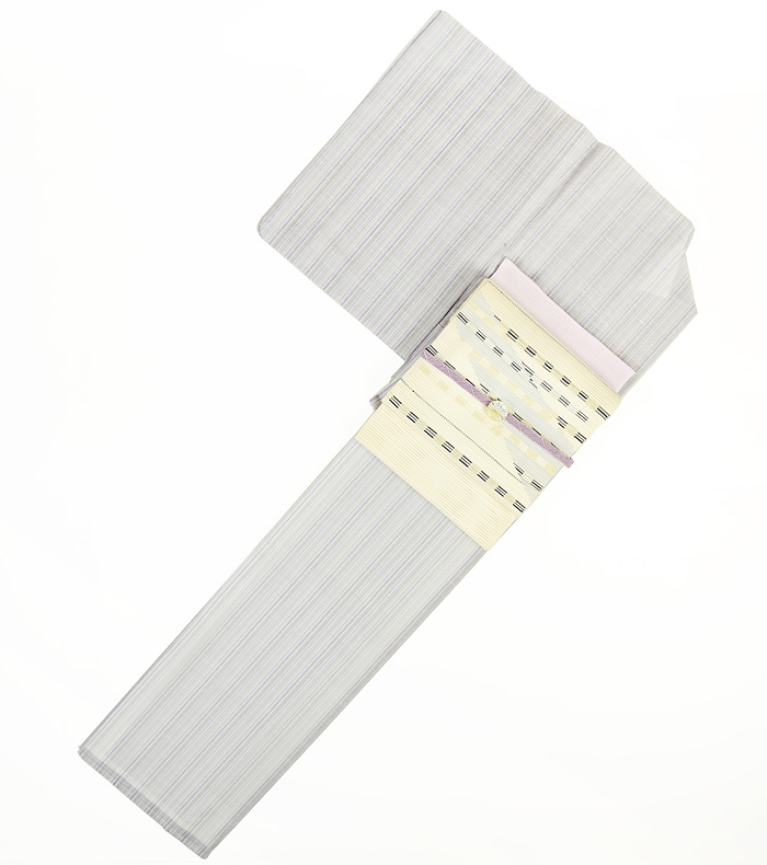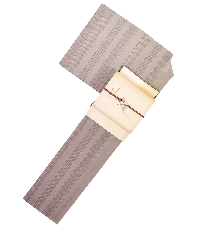 単衣:極細ストライプに規則的地模様が浮かび上がる上質小紋でクールエレガントスタイルを愉しむ
