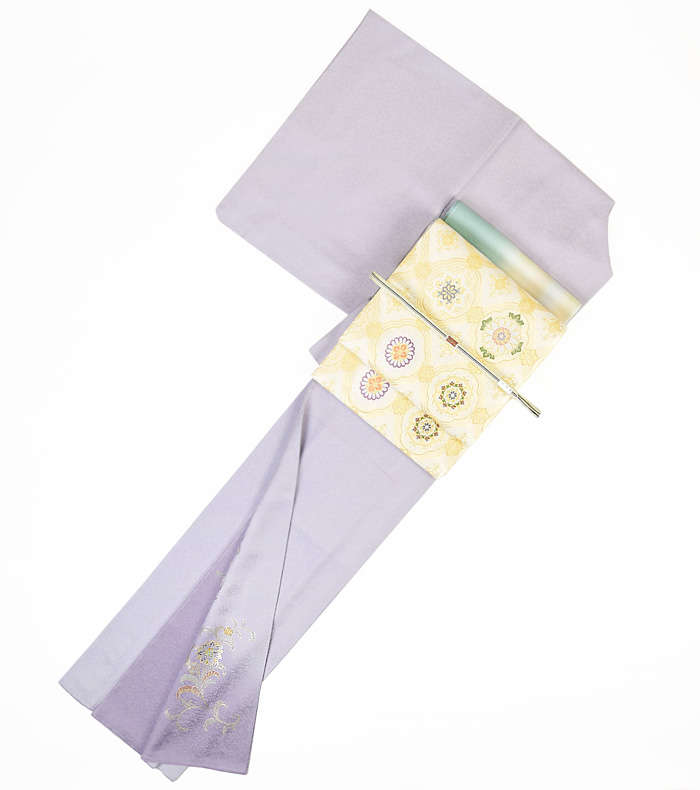 色無地 藤色 山口弘躬謹製 紋意匠縮緬のコーディネイト
