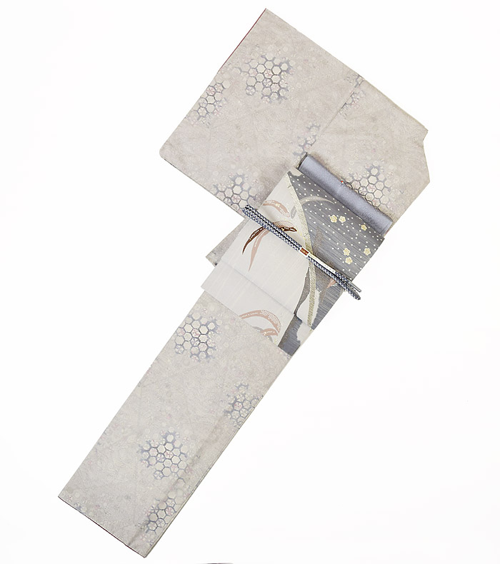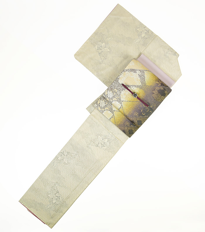 附下訪問着 白灰地 銀杏文のコーディネイト