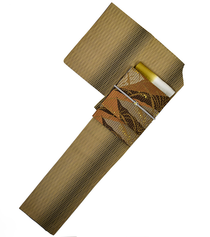 単衣:ベージュ地に縞の夏大島でコーディネートのバリエーションを増やして