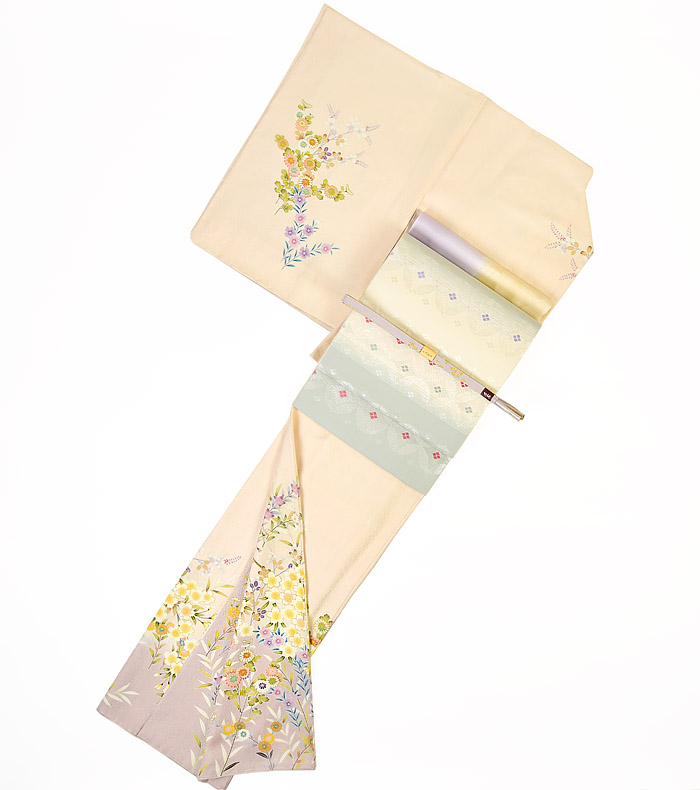上品な附下訪問着に存在感のある帯を合わせれば、"エレガント"にも"ドレッシー"にも変身