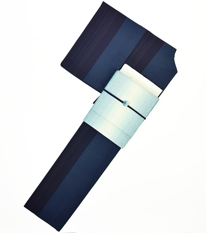 盛夏:ネイビーの夏大島紬でシックに、そして涼しげに