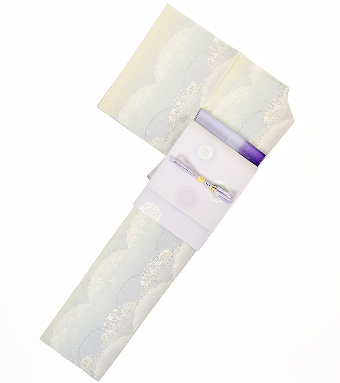 盛夏は麻のちぢみ着物で涼しげに…ラベンダー