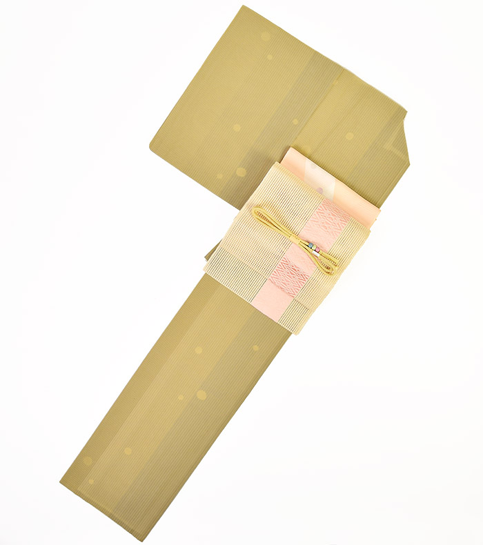盛夏:ベーシックながら様々なコーディネートが楽しめるベージュ色の紗の夏着物