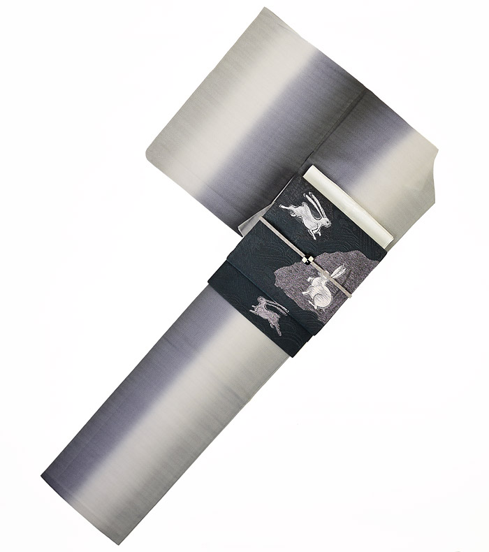 単衣:控え目なうさぎの飛び柄がおしゃれな本塩沢に、お気に入りのカジュアル帯をあわせたカジュアルベーシックスタイル