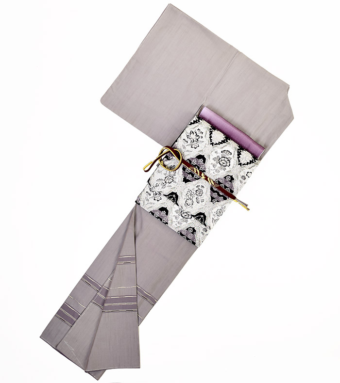 灰紫の赤城紬を濃系の帯でシックに現代的にまとめてみる